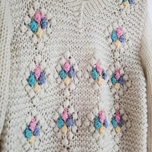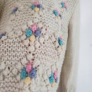 Vintage Embellished Pom Balls Bobble Knit Sweater Cozy Soft Cottagecore