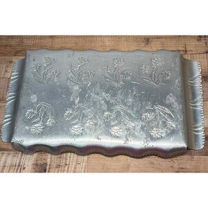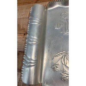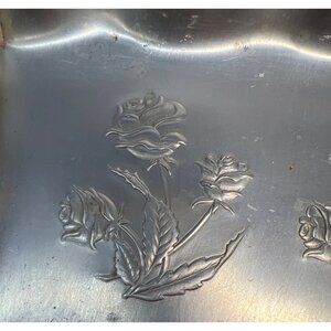 Vintage Embossed Aluminum Serving Tray With Rose Design & Scalloped Edges