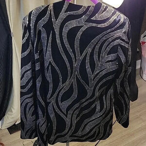1980's Vintage Blazer with Silver and Gold Design on top of a black velvet background.