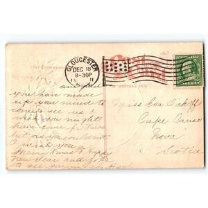 Vintage Embossed Jolly Christmas Snowy Village Postcard 1911