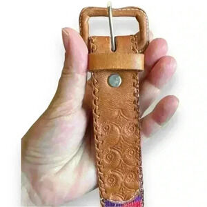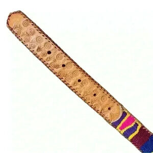 Vintage Embossed Leather & Woven Textile Belt Made in Guatemala Size 28