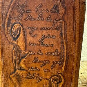 This vintage leather wrapped decanter, with intricate embossed designs, offers a sophisticated touch to any collection.