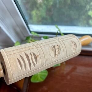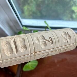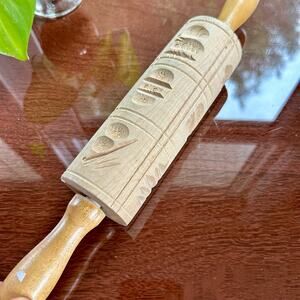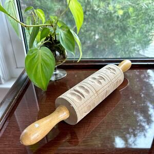 Vintage Embossed Shortbread Pastry Wooden Rolling Pin, Cottagecore