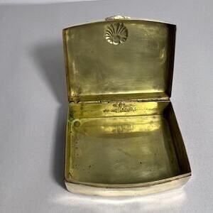 Vintage Embossed With A Shell Flower Brass Trinket Jewelry Box Art Deco