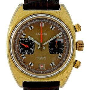 Vintage Embox 38mm Men's 17J Swiss Valjoux 7734 Chronograph Gold Tone Watch