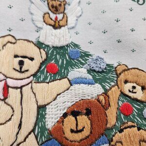 Vintage Embroidered A Beary Merry Christmas Wall Hanging Holiday Decor