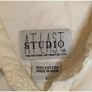 Vintage Floral Embroidered Beaded Western Blouse Shirt Womens Size XL White Blue Button 100% Cotton