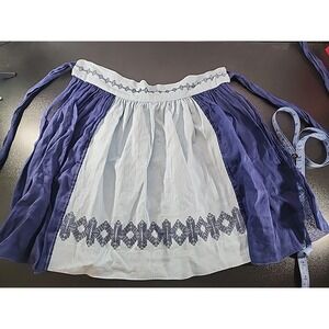 Vintage Embroidered BlueHostess Half Apron Shabby Cottage Retro MCM Handmade