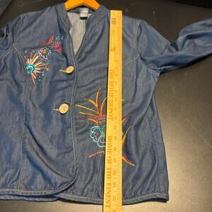 Vintage Embroidered Chambray Blue Jacket Shacket Floral City Blues Koret Small