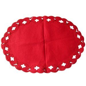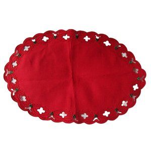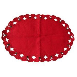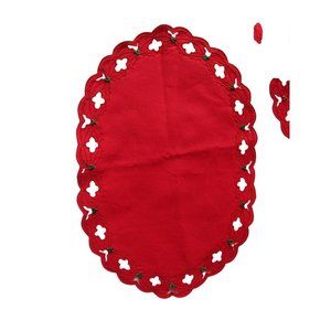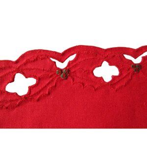 Vintage Embroidered Cutwork Holly Red Christmas Placemats A Set of Four EUC