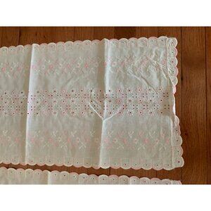 Vintage Embroidered Floral Lace Table Runner Set - White & Pink - 30" x 13"