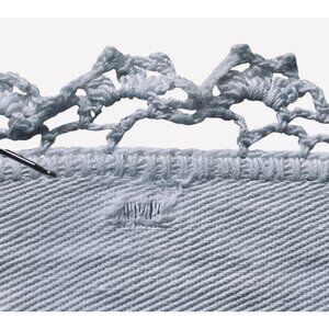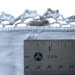Small tear near the crocheted edge as shown. See pic with ruler on the area.