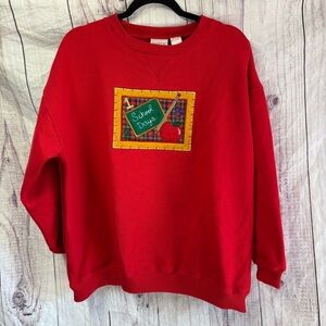 Vintage Embroidered Graphic Print Red School Days Crewneck Sweatshirt Large