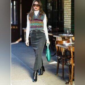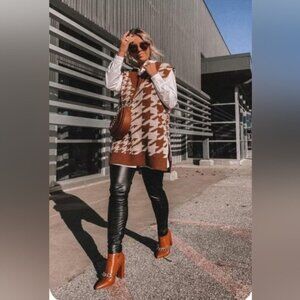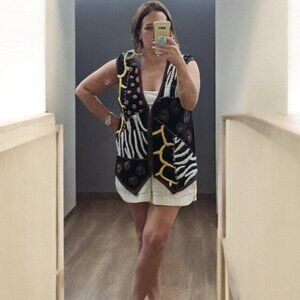 Victoria Jones Sweater vest. Oversized style. Model is XL/1X. Zip front. Embroidery. Beaded leopard spots. Few spots of open/fuzzy threads, easy to tuck in, easy fix, but untreated. Otherwise, EUC! No missing beadwork, no holes, no stains. Gorgeous embellished vest with beads and embroidered detail. Wear all year! Easy to layer for cooler months. Lots of options! **Design style inspo pics included **Actual vest being modeled in last pic