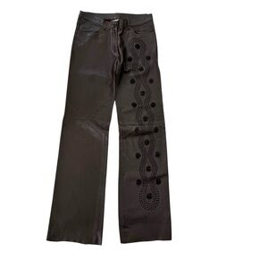 Vintage Embroidered Leather Kerry Grima Flare Pants Brown