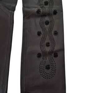 Vintage Embroidered Leather Boho Hippie Kerry Grima Flare Pants Brown Size S