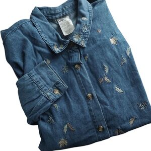 Vintage Embroidered Leaves Chambray Button Down Sz M