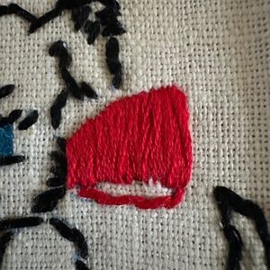 Vintage Embroidered Linen Tea Towel 1950 Cat Dog