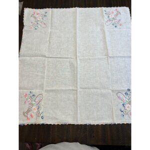 Vintage Embroidered Linen small Tablecloth With Floral Basket Design