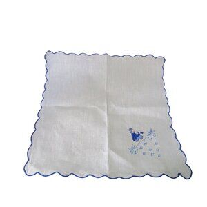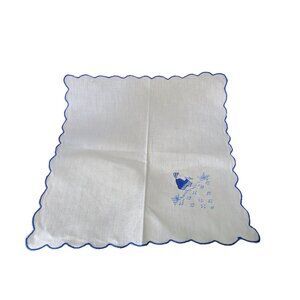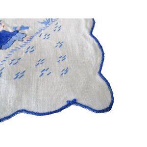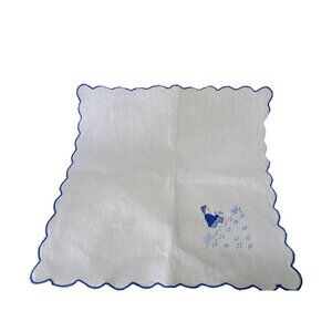 Charming vintage embroidered napkins featuring a blue shirt boy with a boat and delicately scalloped edges. Set contains four pieces in good used condition. 12.5" square, unbranded. May Show Minor Snags, Minor Pilling, Minor Loose Threads Consistent With Normal Wear, Storage and Laundering. Will Arrive Wrinkled. May Show Fading. May Have Loose Buttons. May Show Minor Defects in Manufacture and Decoration.