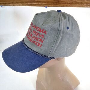 Vintage Embroidered Oklahoma Boll Weevil Eradication Organization Trucker Hat Cap with Snapback Blue Rope, it is a Cobra Cap. Looks to be never worn