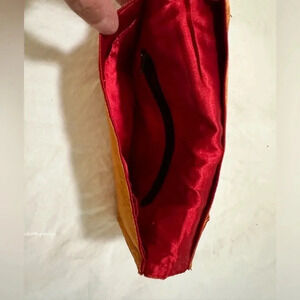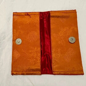 This vintage embroidered clutch/wallet is a must-have for any fashion-forward woman. The exterior is made of a comfortable cotton blend in a vibrant orange color, with beautiful embroidery details that add a touch of elegance to the overall design. The clutch features a classic style that is perfect for a night out or a special occasion, while the wallet side provides ample space for your essentials.