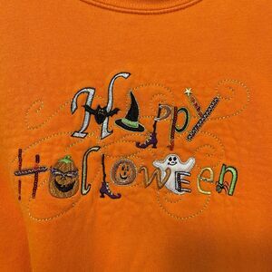 Vintage Embroidered Orange Halloween Sweatshirt Size XL
