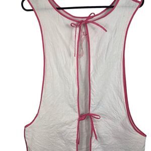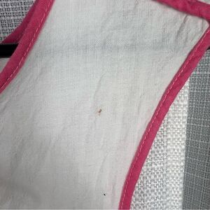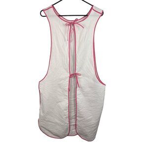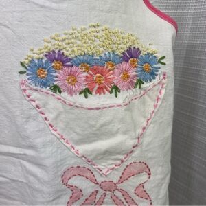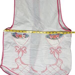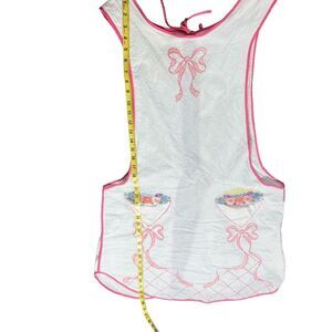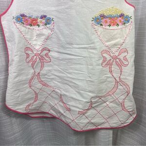 Vintage Embroidered Pinafore Apron Floral Bow White Pink Pockets OS