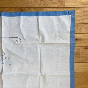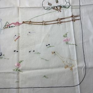Vintage Embroidered Small Tablecloth Linen Little Boy Blue Blowing Horn Lambs