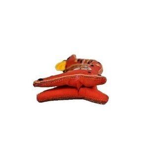 This handcrafted giraffe ornament, adorned in a vibrant orange hue, is a delightful representation of whimsical artistry. Its elongated neck and intricate floral pattern bring a touch of playful elegance. Perfect for adding a splash of color and creativity to any living space, this unique piece is sure to be an eye-catching addition.