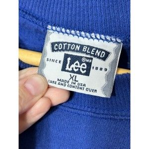Bright cobalt blue crewneck tide racing downy racing sweatshirt by Lee S&P with orange and yellow embroidered logos in size Extra Large | XL