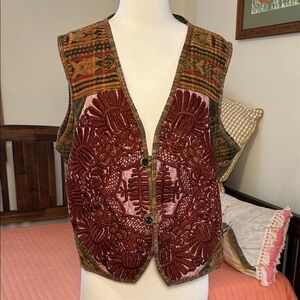 Vintage Embroidered Unique Fabric Vest approx size Large