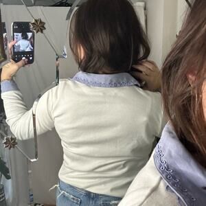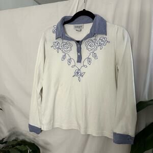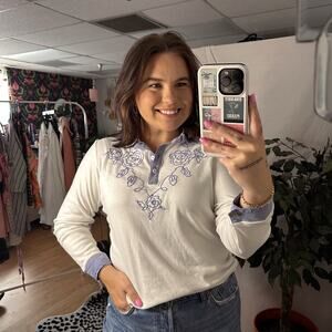 Vintage Embroidered Western Long Sleeve Polo Top White Size PS