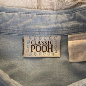 Light blue button down shirt featuring playful embroidery. Vintage Winnie Pooh