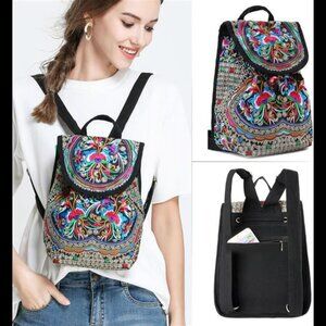 Vintage Embroidered Women Backpack Ethnic Travel Handbag Shoulder Bag