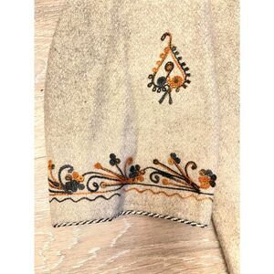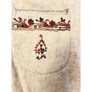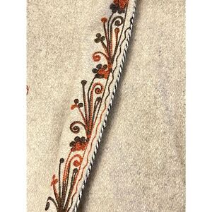 - The embroidery (rust, brown, olive, and cream threads) suggests traditional or folk-inspired work; could be Eastern European, Turkish, or Moroccan artisan style.
