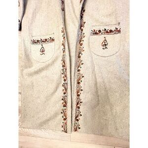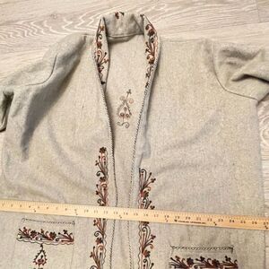 Vintage Embroidered Wool Duster Coat Beige Boho Folk Art Longline Handmade