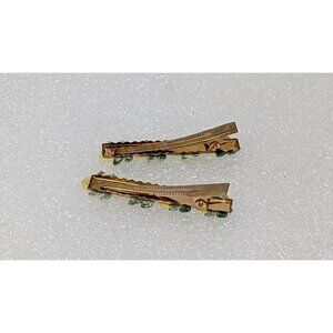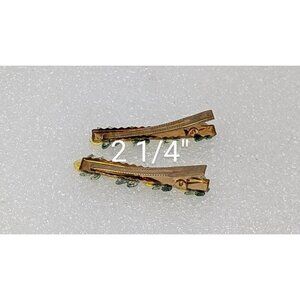 Elegant hair clips featuring intricate embroidered floral designs on a durable gold tone metal base. Ideal for adding a touch of sophistication to any hairstyle.