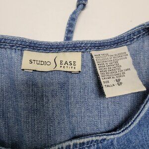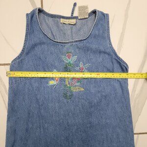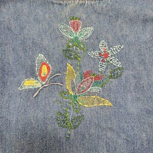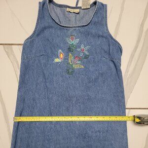 Beautiful 100% Cotton vintage denim dress by Studio Ease with embroidery floral and butterfly design.