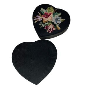 Vintage Embroidery Floral Bouquet Black Heart Trinket Box