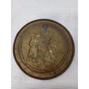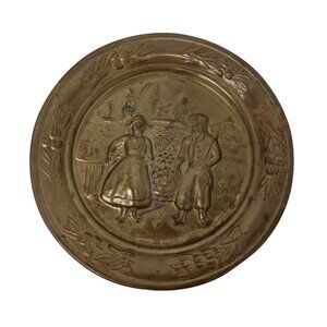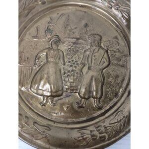 Vintage Embrossed Bronze Metal Brall Datch Couple Seine Wall Decor Plaque
