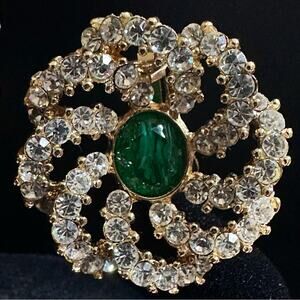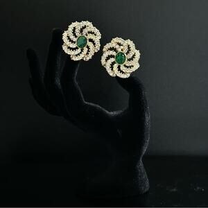 Vintage Emerald And Clear Crystal Round Floral Pendant Earrings