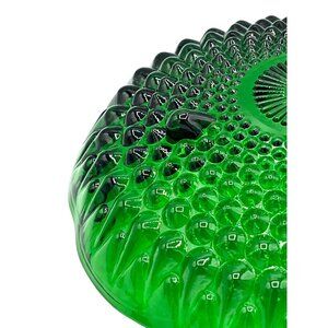 This elegant vintage green pressed glass bowl offers a timeless design with its intricate pattern and vibrant emerald hue, adding a touch of sophistication to any setting.