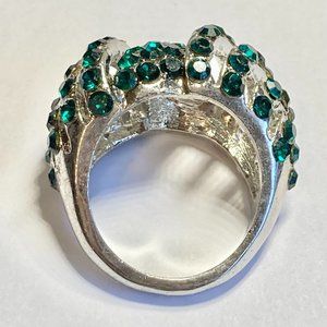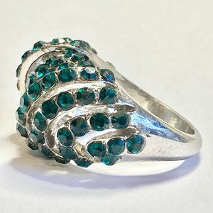 Vintage Emerald Green Crystal Boho Dome Cocktail Ring Size 9 Silver Tone Plated