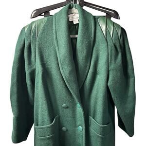 Vintage Emerald Green Double Breasted Worthington Wool Blend Leather Coat Sz 8