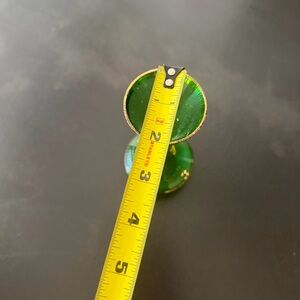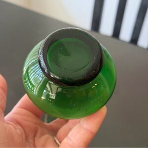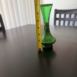 Beautiful green glass vase featuring a gold rim. Perfect for home decor.