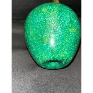 Vintage Emerald Green Marble Apple with Brass Leaf Paperweight 3”