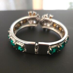 Vintage Emerald Green Rhinestone Art Deco Style Hinged Clamper Bracelet
