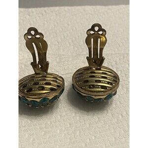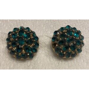 Add a touch of elegance to your outfit with these beautiful antique clip-on earrings. The emerald green rhinestone stones are set in a gold-tone cluster design, giving a unique and stunning look. Perfect for formal events, these earrings are round in shape and feature a clip-on closure for easy and comfortable wear. The earrings are crafted with high-quality materials, making them a great addition to any jewelry collection. Beauty, art, and fashion & costumes are some of the themes that these earrings will complement. They are suitable for women of all ages and can be worn on any occasion.