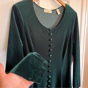 Vintage Emerald Green Velvet Long Sleeve Dress